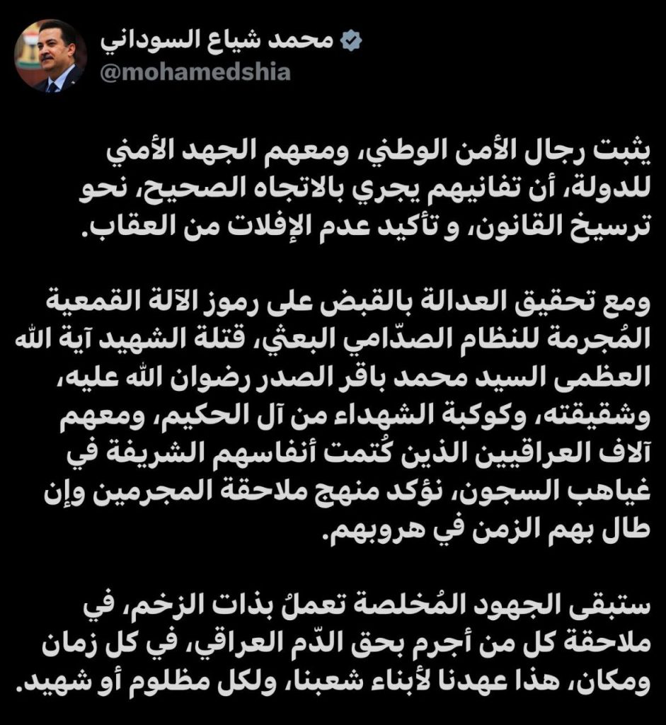 القائد العام للقوات المسلحة محمد شياع السوداني يوجه بضبط ورفع مستوى القدرات الأمنية