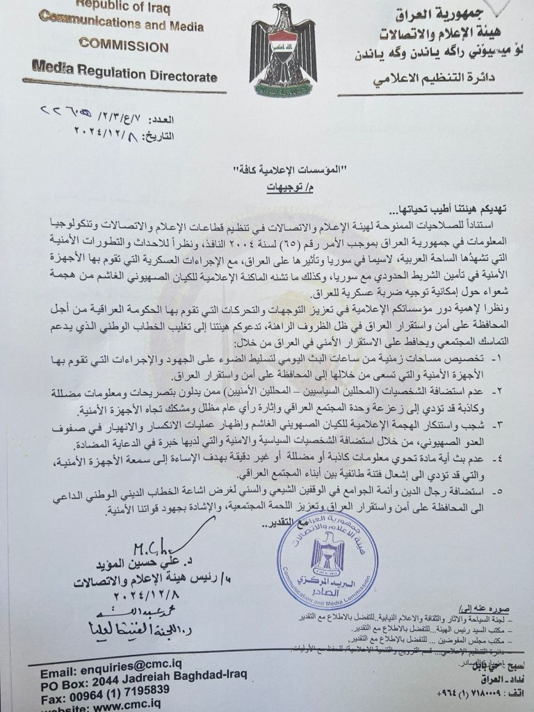 سياسة مجتمع بالوثيقة .. هيئة الاعلام والاتصالات تصدر توجيهات الى المؤسسات الاعلامية كافة By eastNews ديسمبر 11, 2024