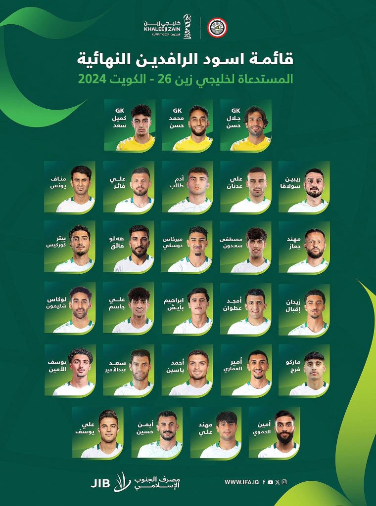 أعلن مدربُ المنتخب الوطنيّ “خيسوس كاساس” قائمةَ اللاعبين النهائيّة المُستدعاة لخليجي 26 ، وقبلها لمُعسكرِ الدوحة المزمع إقامته للمدةِ من 14-20 كانون الأول/ ديسمبر الحالي.